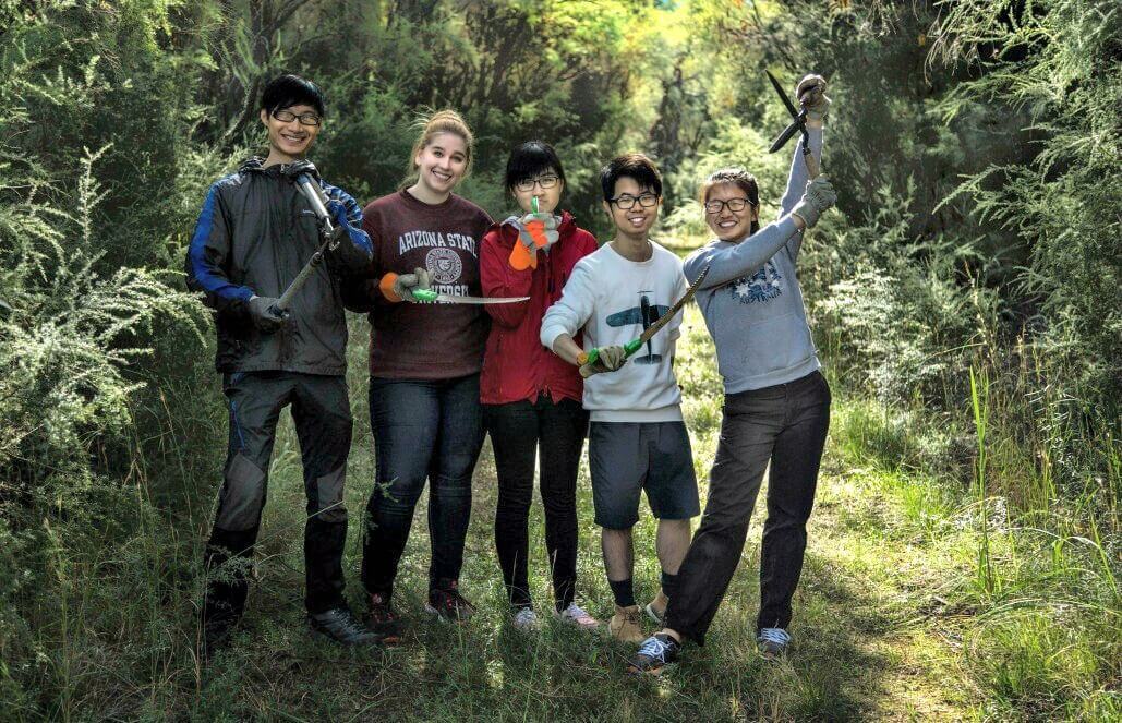 - נטיעת עצים, גריפת שבילים וניכוש עשבים בסביבת המתחם